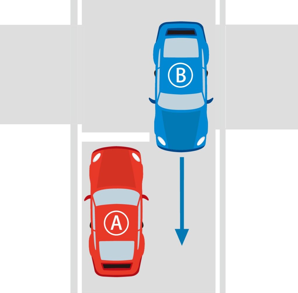 すると、対向車Aの後続車両BがAを追い抜いて交差点を通過しN様が停止していた道まで進行してきました。